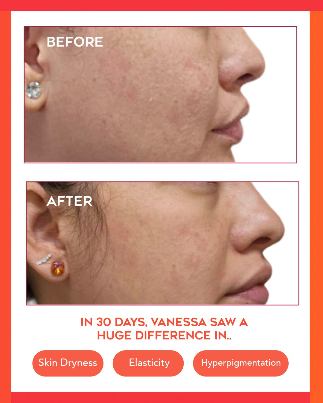 Immediate hydration and comfort. Visible glow and tone improvement within 2 to 4 weeks of daily use.