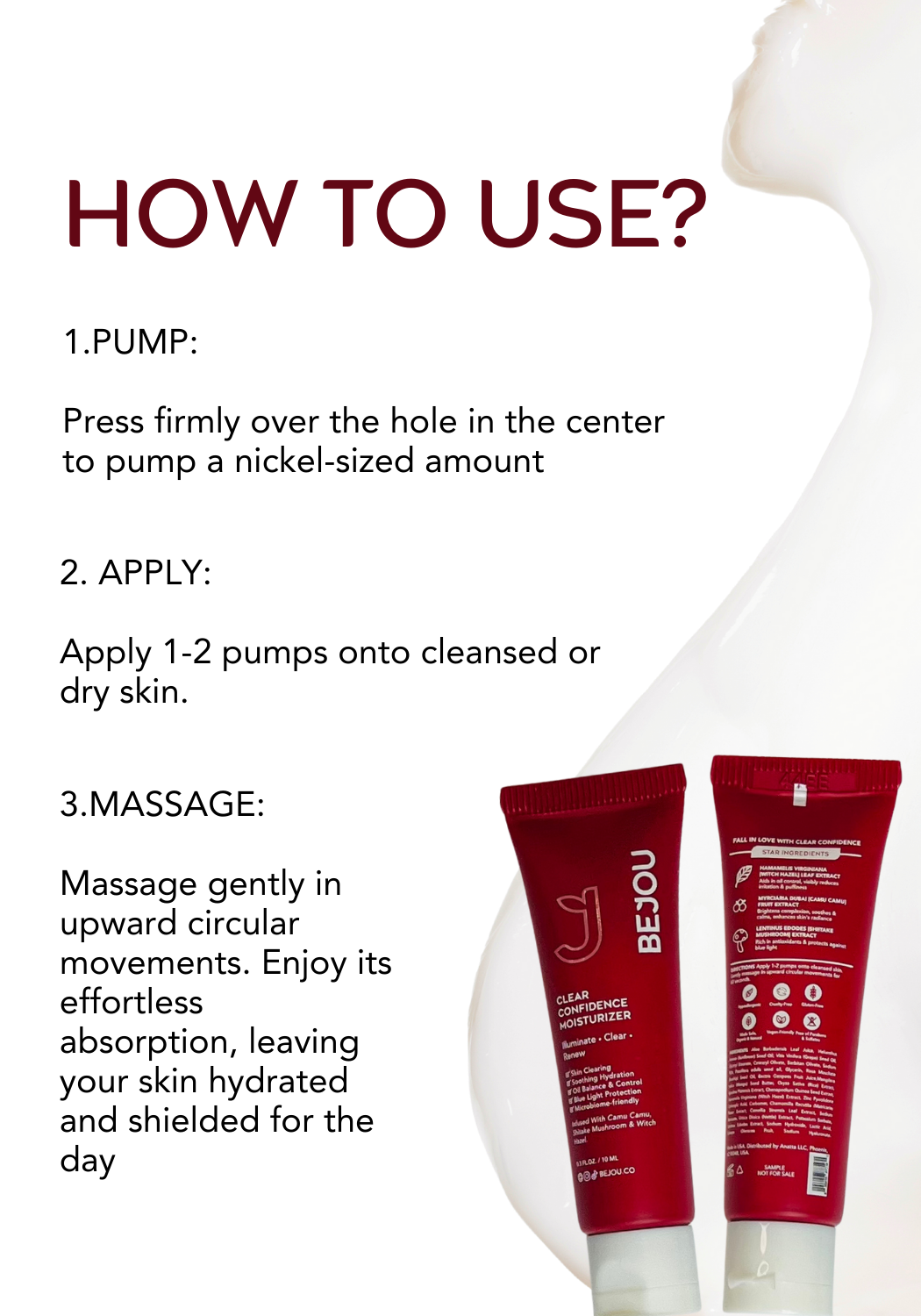One pump per use lasts 2.5 to 3 months. Refillable options are available for the moisturizer to reduce waste.