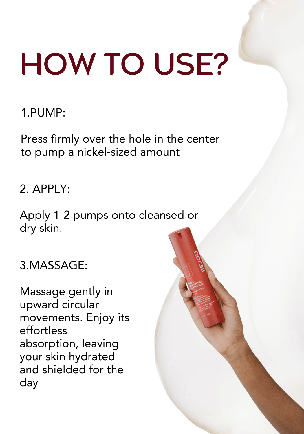 Immediate hydration and comfort. Visible glow and tone improvement within 2 to 4 weeks of daily use.